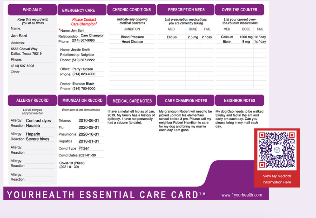 YourHealth Essential Care Card™ (ECC) – gives you control to document your critical medical information so you are prepared before an emergency.