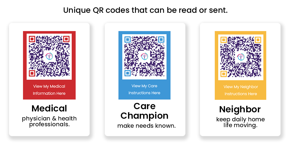 YourHealth Essential makes it easy to provide this information through personalized QR codes. You can keep these QR codes on your phone, in your wallet or any place you choose. In addition, you can send the QR code via email or SMS to people you have selected.